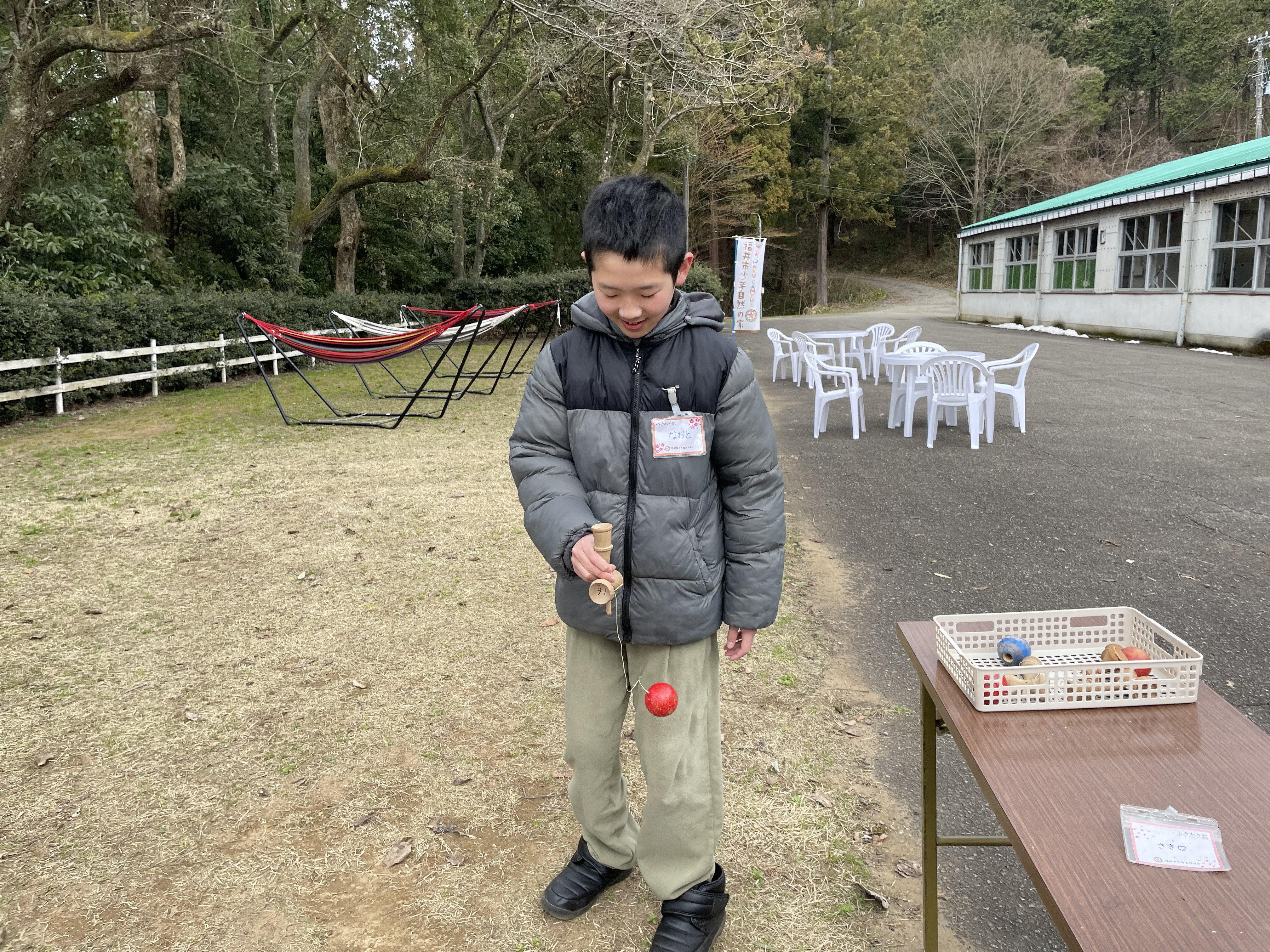 ![]() けん玉に トライ |